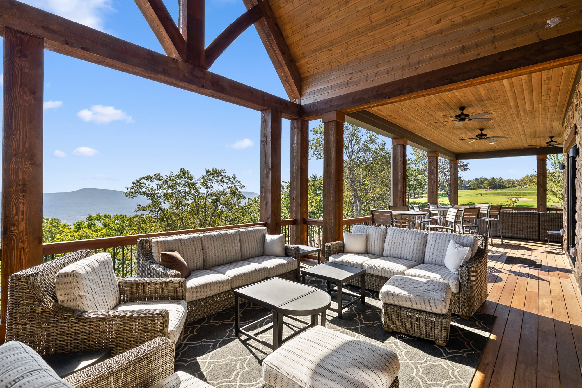 Located at the end of the 6-hole short course, The Cairn, the ‘Friends of the Cove’ house offers 180 degree views off Lookout Mountain, wrap around porches for relaxing and gathering, an outdoor grill for entertaining, and an open-concept floor plan on both the main and bottom level of the house.