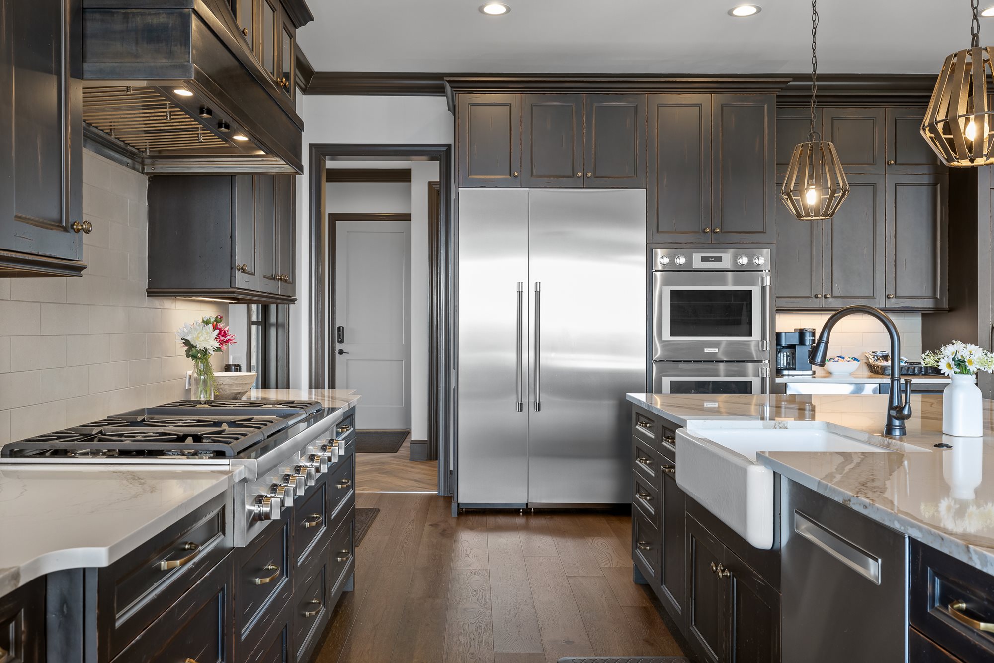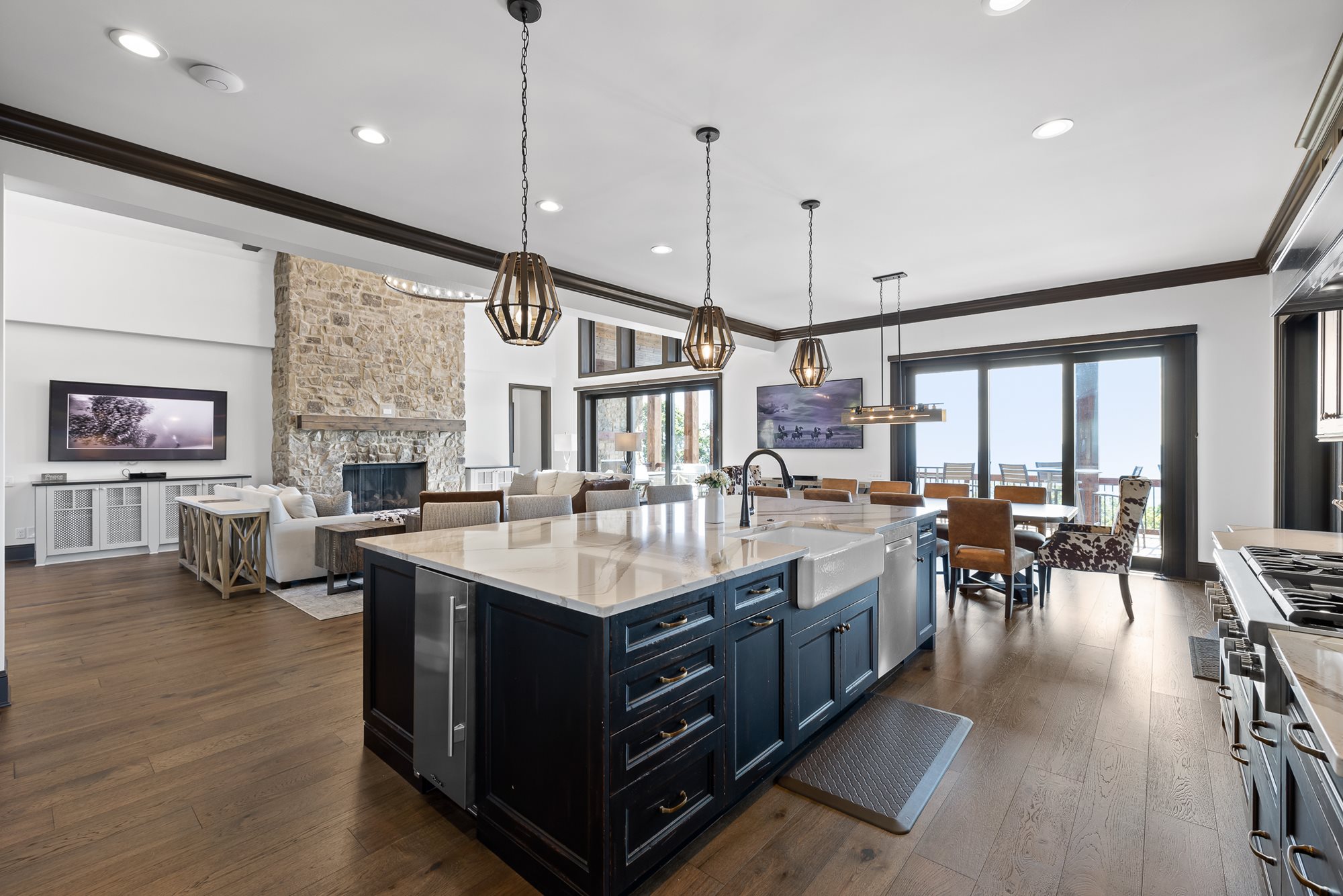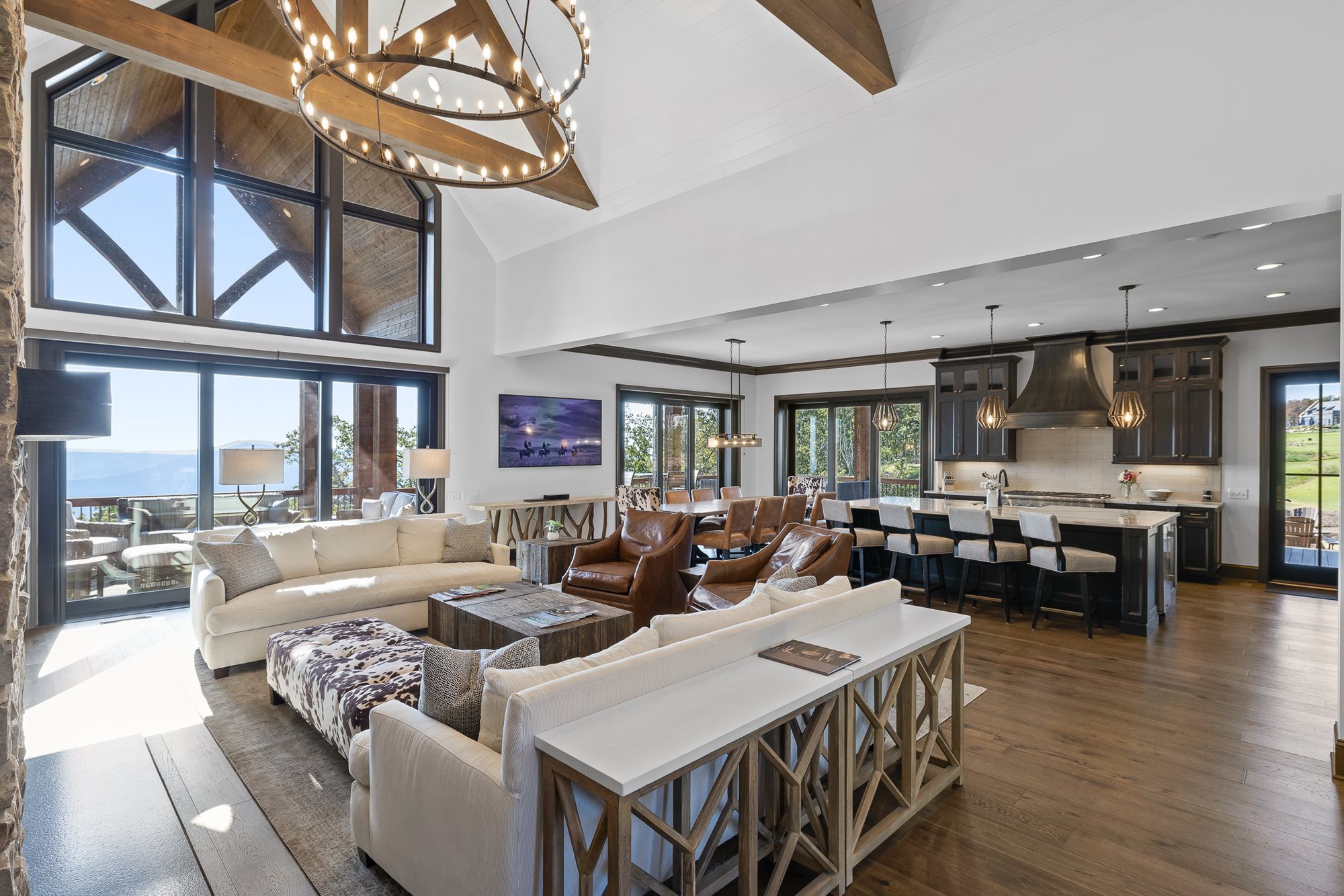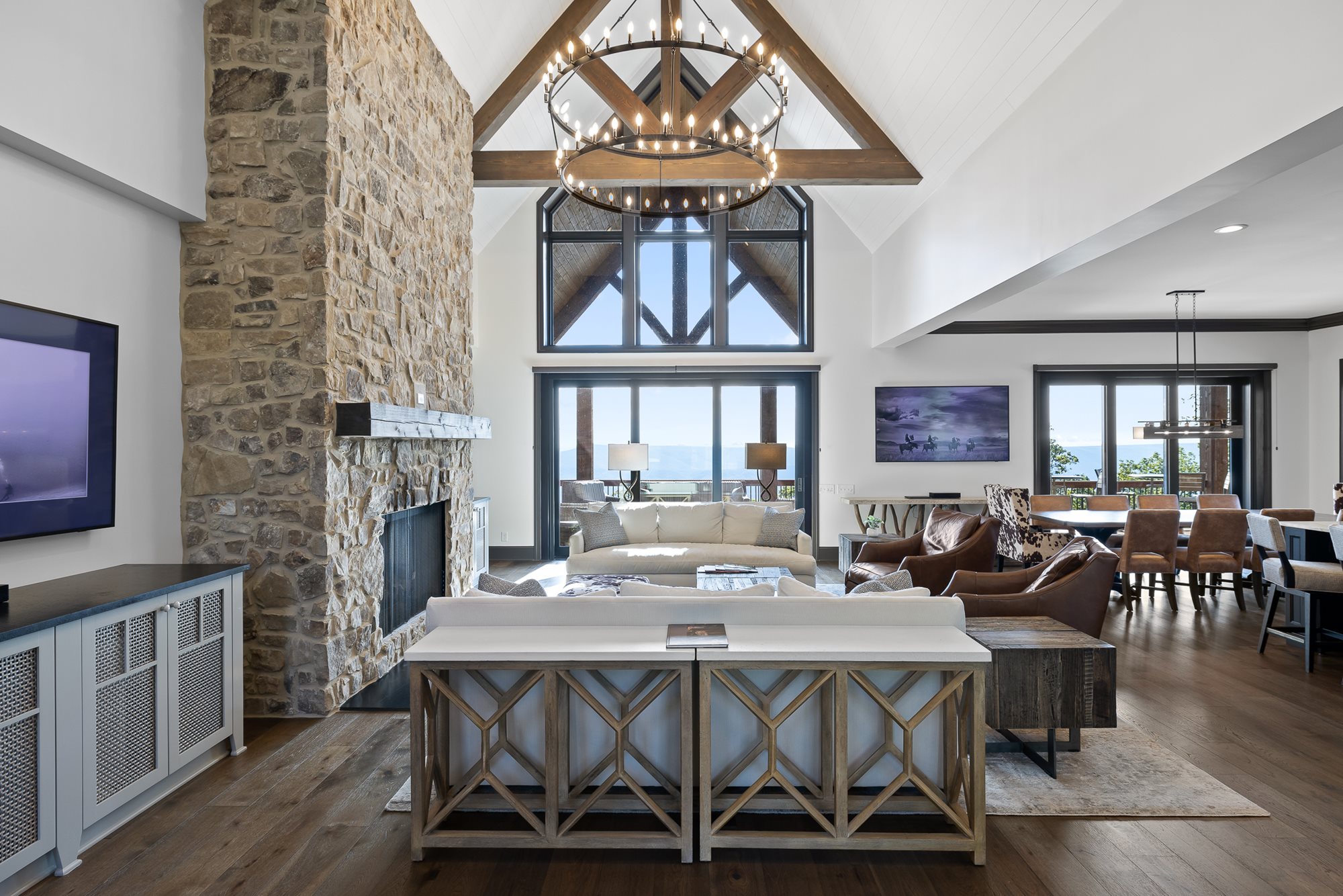 Additional features include state of the art appliances and cooking surfaces, smart technology throughout the house and a garage plus additional parking spaces in the front of the house. This lodge-style mountain rental is perfect for corporate retreats, couples trips, or family vacations.