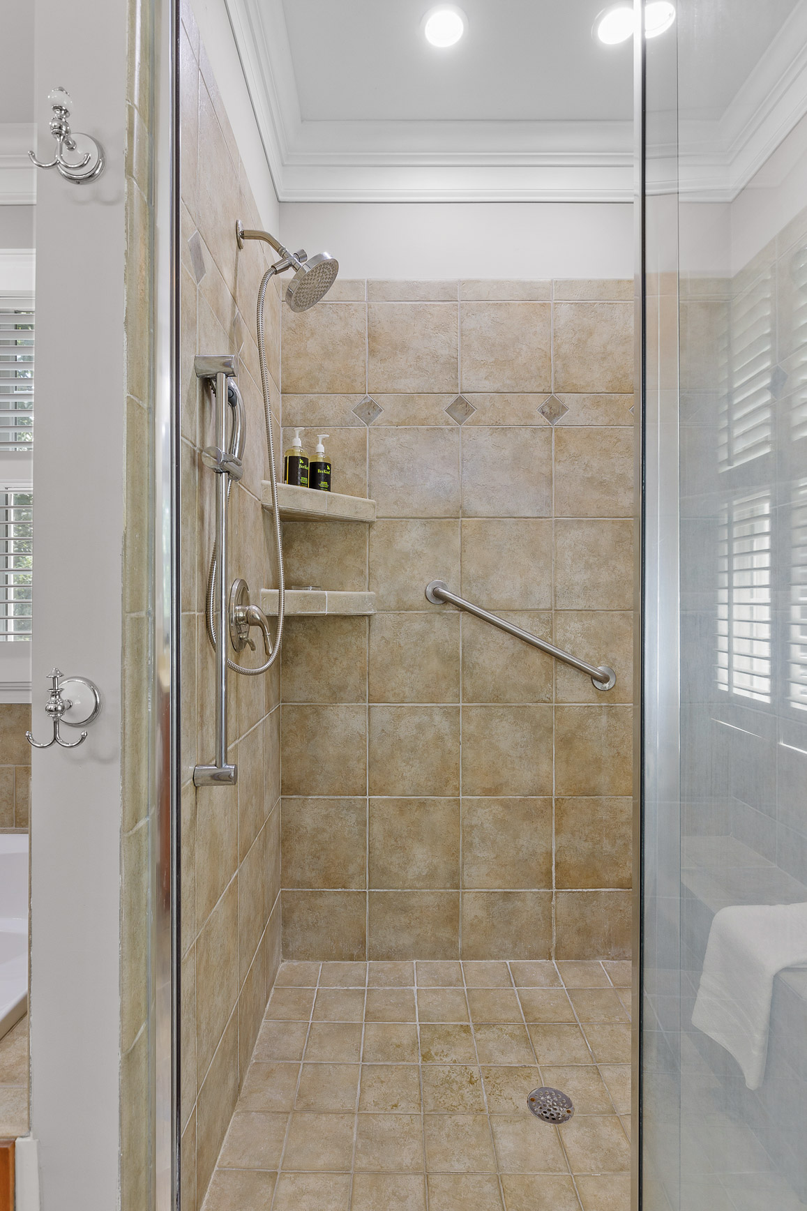 walk-in shower, separate jetted tub