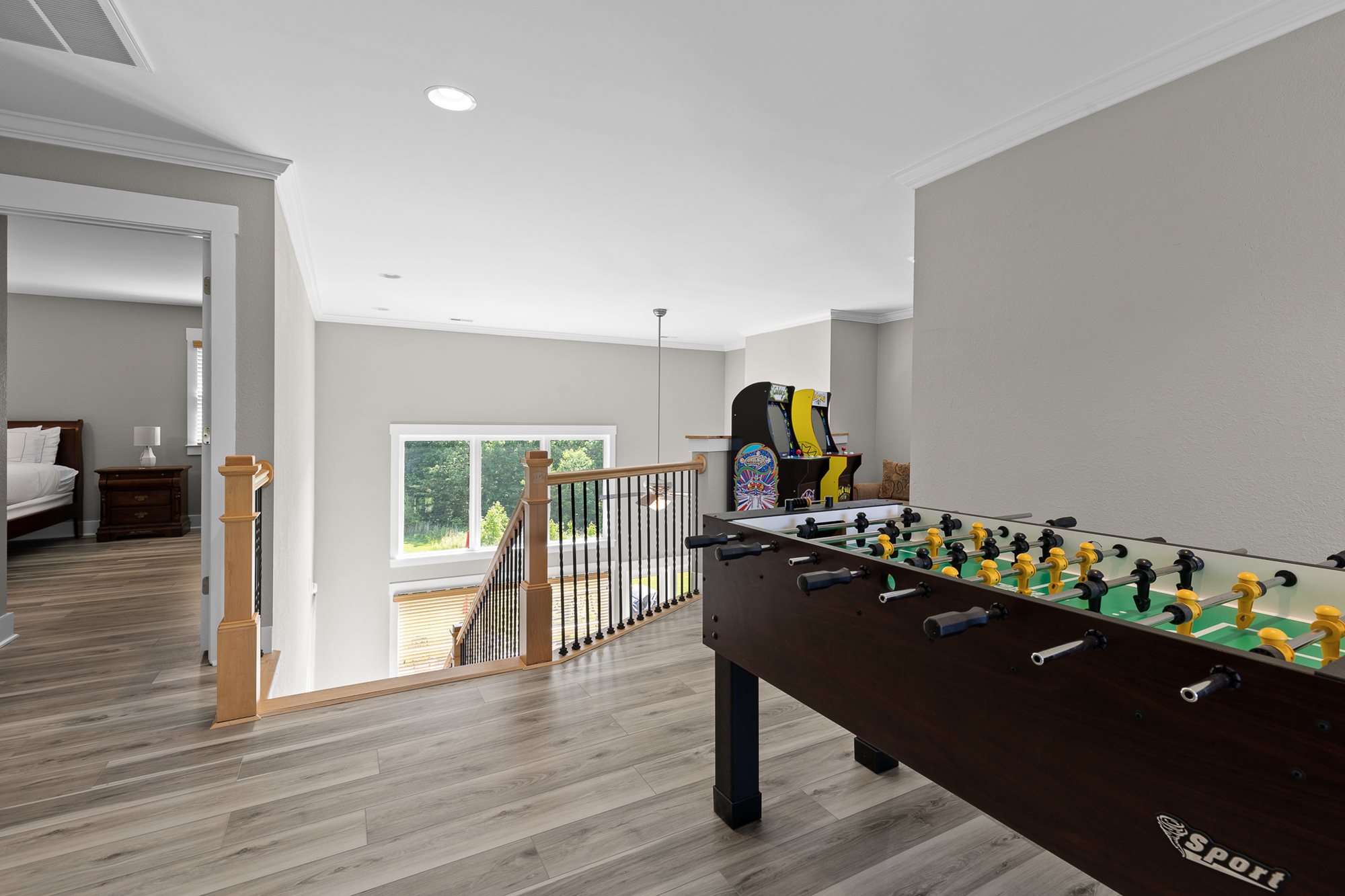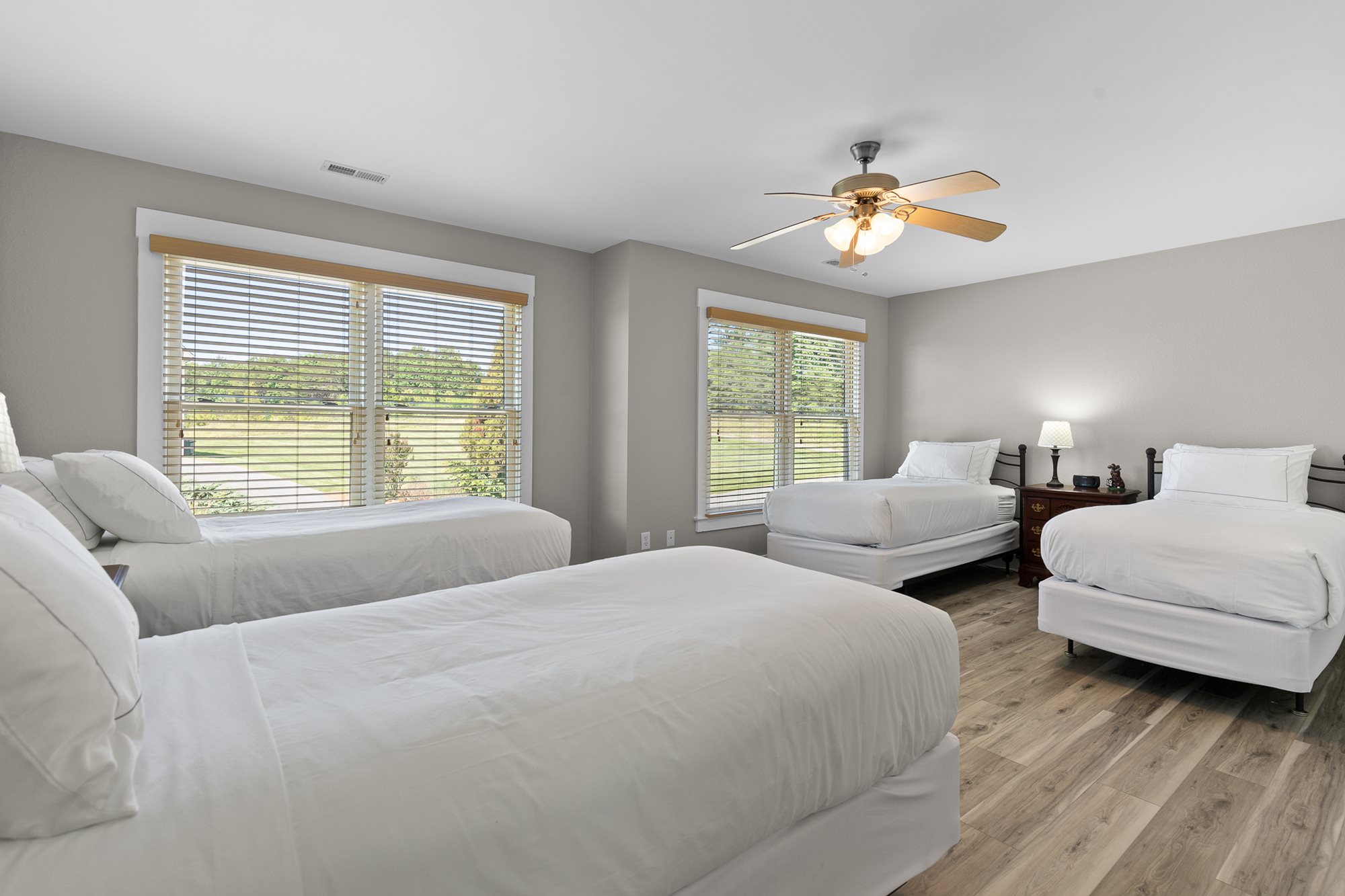 Accommodating up to nine overnight guests, this three bedroom, three and a half bath home provides guests with all the comforts desired in a weekend getaway spot. The primary bedroom is located on the first floor and connects to an outdoor porch with a view of neighboring forests. Two more spacious bedrooms complete the home, each with its own full bathroom.