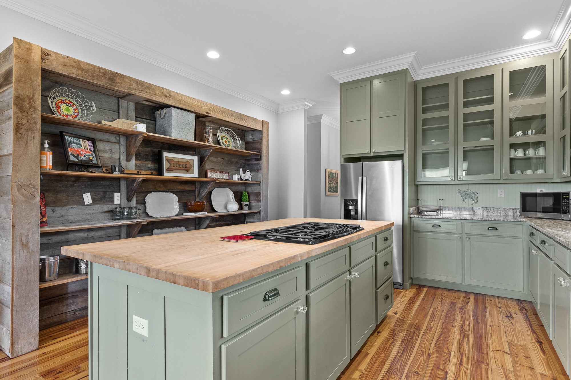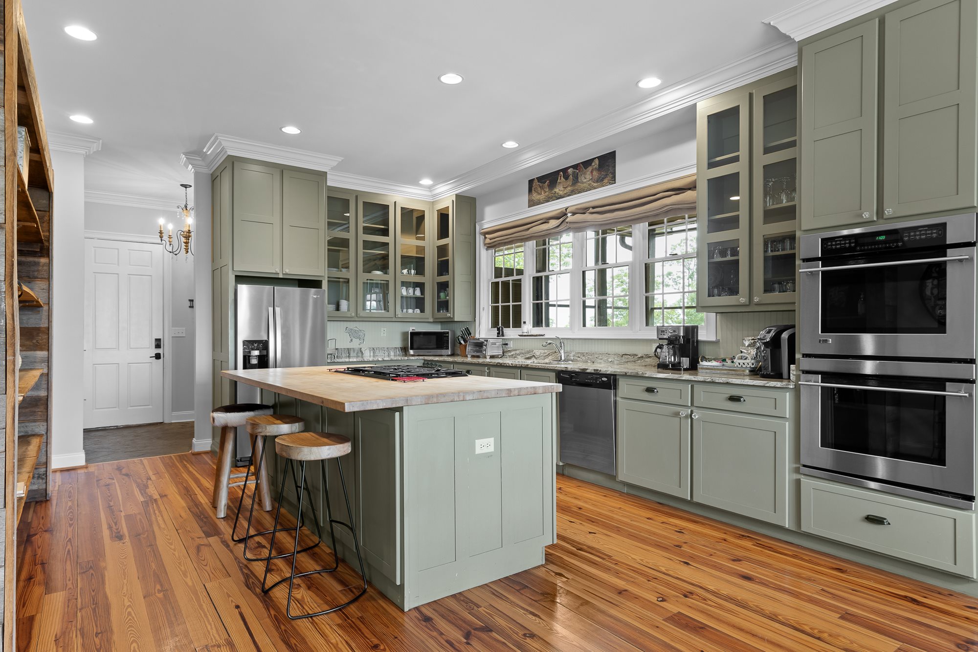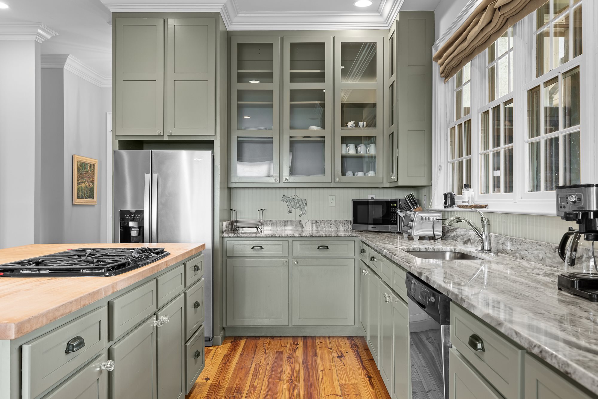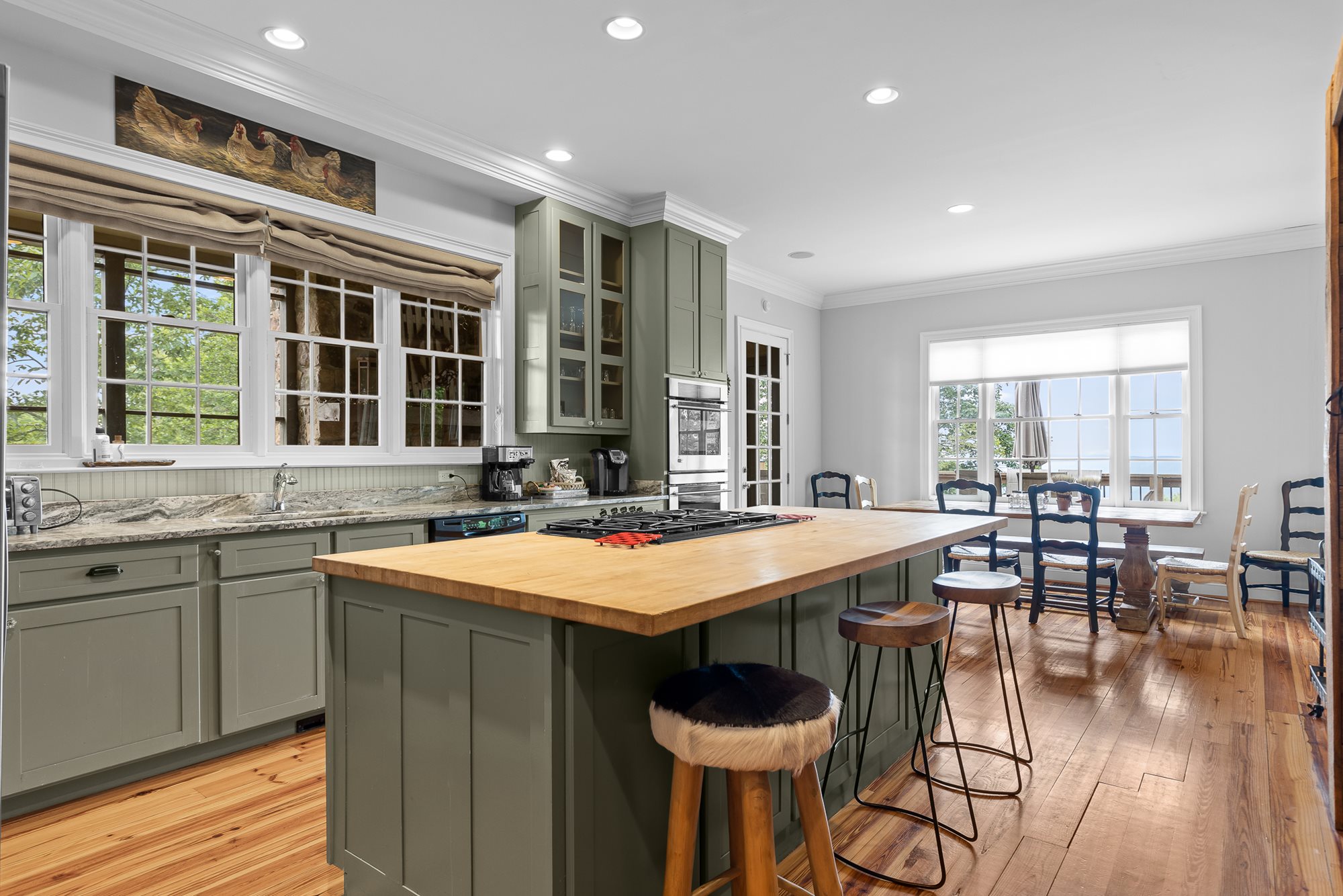 On the main floor is a fully-equipped kitchen, a butcher-block island with 5-burner gas cook-top and two full-size ovens. The huge great room opens onto the deck and offers comfortable arrangements for socializing, watching TV, etc. With the open floor plan, large bedrooms and living spaces, this house is perfect for a large group or multi-family trip.